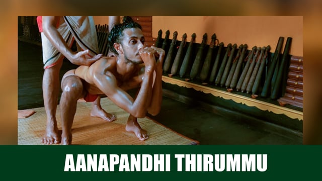 Aanapandhithirummu is a palm massage therapy segment of Kalari marma treatment. This therapy segment is utilised to improve the speed, strength, flexibility and equilibrium of the body of the students who learn kalaripayattu. The strength and stability of elephant posture and associated movements to the perfection can be achieved to the dedicated kalaripayattu students by the perfect execution of this therapy. The elephant posture or Gajavadivu is one of the important body posture of kalaripayattu. The kalaripayattu students acquire low level body posture and movements for different payatukal or combat combinations through the practice of Gajavadivu. This therapy segment will help to improve the strength and perfection of gajavadivu along with a powerful backbone, knees and ankles. This therapy segment is also utilised for people who don't practice kalaripayattu in order to maintain well balanced body structure and to reduce chances to dislocate knee joints and backbone. It is also helpful to reduce over mass and improve physical capabilities. The people who are subjected to this therapy segment are advised to follow a well prescribed diet and medicines to achieve maximum benefits.The purpose of this video is to preserve this precious knowledge from extinction.
