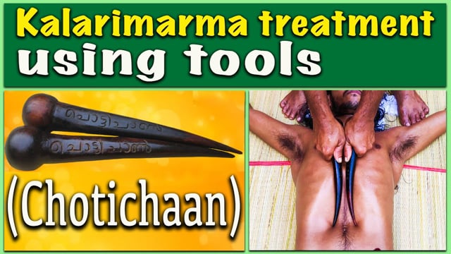 This video is related to the various applications of a treatment tool named 'Chotichaan' among the 96 tools of Kalarimarma Treatment. Its various massage applications is helpful to dissolve unwanted fatty layers, various tumors visible on the skin, removing stagnations & thick blood deposits of arteries and blood vessels. This treatment has been applied to the patients only after completing at least 7 days course of palm massage therapy or leg massage therapy. The pressure level applied on an individual while applying chotichaan massage therapy depends on various factors like the body weight, height etc. The patients who are perfectly subjected to this treatment course will be completely recovered from the imperfections of body due to the shortage of blood flow through blood vessels & also from improper or irregularities of marma spots or even from several stages of paralysis. It also results in the enhancement in energy levels & physiological balance.