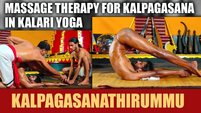 According to the science of kalarimarma therapy, kalpakasanathirummu is very helpful to make perfection in the movements, in folding postions, to remove stagnation and to recorrect rhythm of breath while performing kalpakasana and associated postures. The person who practice kalpakasana has to perform it's associated postures or slight variation postures to achieve complete results of it. The people who find difficulty to perform kalpakasana is provided with this massage therapy in traditional kalaris. The vortices found in both sides of the pelvic bone, lower portion of abdomen, the vertibrae of backbone, the nerves related to to back side from head to legs, the joints related to back of the neck, pelvic joints and joints related to mooladhara will be strengthened by this massage therapy. The people who are suffering from diseases like fits or fainting tendency etc can be completely recovered without using medicines by the dedicated practice of kalpakasana and associated postures for atleast 3 years. There will be differences in the methods of providing this therapy, according to the difference in the body condition of a person who are subjected to it. But some important methods are demonstrated in this video and it is based on the science of marma therapy as a result overall marma points of human anatomy will be improved and achieve benefits. The purpose of this video is to preserve this precious knowledge from extinction. Please try to avoid blind imitations of this video.