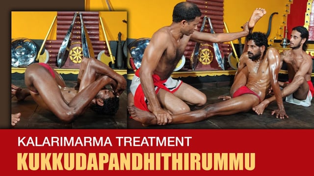 Kukkudavadivu or Rooster posture is an important posture among the basic eight postures of kalaripayattu. Various applications of verumkaimurakal or bare handed fighting tactics of kalaripayattu is involved in kukkudavadivu and associated movements like to jump high, to reach the opponent quickly, to attack on exact spot and to apply multiple attacks like kick on the face area then turn round without touching ground and apply threshing kick simultaneously to the chest portion of the opponent etc. There are more than 28 attacking methods are included in the kukkudavadivu. The quick and active movements of fighting roosters and several applications of bare handed fighting tactics of kalaripayattu can be executed only through the perfection of kukkudavadivu. Kalaripayattu postures massage therapy are used to be provided only for the dedicated students who have completed atleast 6 years in gurukul mode of kalaripayattu training. Kukudapandhithirummu is helpful to perfectly align the six dimensions of hip joints as a result students can able to perform perfection of Kukkudavadivu along with strength, attraction and endurance. It is also helpful to improve the abilities of joints and nerves which results in reducing palpitation and to stay long in fighting sequences untill achieving target. The purpose of this video is to preserve this precious knowledge from extinction.