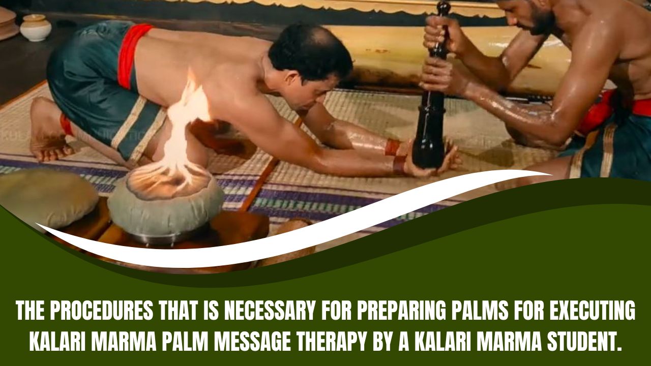The procedures that is necessary for preparing palms for executing Kalari marma palm message therapy by a kalari marma student (Duration: 02:17:50)