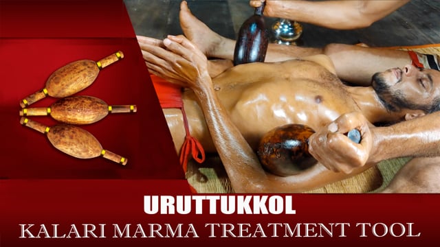 Massage therapy using Uruttukkol is helpful to improve softness of skin, to develop easiness of muscles and to relax nerves. It is also helpful to improve the functionality of shoulder joints, knees and elbow joints. This tool is also useful to bend the joints, facing with excessive stiffness due to several diseases. Massage therapy using this tool is helpful to improve the functionality of sub Marma points located in the inner portion of palm and foot. It is also helpful to improve the functionality of meta carpels and phalanges and also to improve the body shape. Applications of Uruttukkol is mostly applied on persons who are facing with obesity along with excessive formation of mucus in the body. The treatment duration and medicines are finalized along with Pathya only during the consultation time with Kalari Marma Treatment expert. The purpose of this video is to create awareness among youngsters and also to preserve this precious knowledge for upcoming generations.